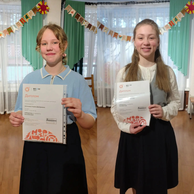 Ученицы 7А класса Русской Классической Школы — Матюхина Ульяна и Сипатова Татьяна — стали победителями муниципального этапа Всероссийской олимпиады школьников по русскому языку.
